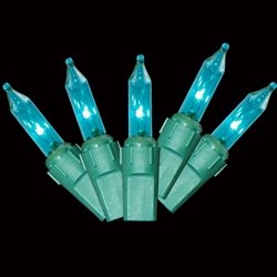 Enhance your holiday decor with our String Lights! This set comes with 50 teal incandescent bulbs on a green wire. These string lights are UL listed of indoor and outdoor use. The strand is 14.5 feet long and comes with a standard two pronged wall plug in..../ 50 String Lights on a Green Wire, Outdoor Plug-In, Teal / Stringlights